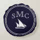 MONOGRAM Vast donkerblauw Witte zeilboot Rond Kussen