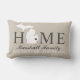 Stijlvolle welkomstkussens bevatten "Home"-tekst met een Michigan-staatskaart en aangepaste tekst die kan worden gepersonaliseerd met uw familienaam en de stad, waar u woont. De hartstedenmarkering kan via Gepersonaliseerd naar de juiste locatie worden verplaatst. Horizontale strepen maken de achterkant omhoog. Zacht zwart/onyx, beige, en witte kleuren.