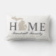 Stijlvolle welkomstkussens bevatten "Home"-tekst met een Michigan-staatskaart en aangepaste tekst die kan worden gepersonaliseerd met uw familienaam en de stad, waar u woont. De hartstedenmarkering kan via Gepersonaliseerd naar de juiste locatie worden verplaatst. Horizontale strepen maken de achterkant omhoog. Zacht zwart/onyx, beige, en witte kleuren.