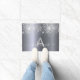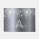 Een faux zilveren metalen achtergrond met faux zilveren glitterstof. Pas uw familienaam en monogram letter, initiaal aan en voeg deze toe. Witte en grijze gekleurde letters. De naam wordt geschreven met een trendy hand geschreven manuscript met swashes. Om de spoelbeurten te houden schrap slechts de steekproefnaam, verlaat de ruimten of emoji's voor en na de naam.