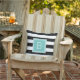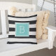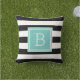 Voeg een gedurfde, moderne stijl toe aan uw geduld, dek of zwembad met onze monogrammed kussen in zwart-wit met een pop water. Het ontwerp biedt brede zwarte en witte horizontale strepen aan beide zijden, met uw monogram van één initiaal aan de voorzijde in levendige, summiere turquoise aqua.