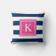 Monogram warm roze en marinemonogram gestript | SI Kussen
