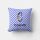 Monogram initiaal waterverf bloem gingham blauw Sierkussen. letter C