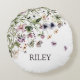 Monogram Waterverf Paarse Wildbloemen Rond Kussen