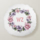 bloemkussen met ronde bloemen, met een mooie cirkelvormige poot van waterkleurbloemen in roze en paars met groene bladeren. Het heeft de initialen van jouw naam om uit te komen. U kunt dit ontwerp met uw of geliefde monogrammen of initialen aanpassen of de tekst verwijderen door op "Deze sjabloon personaliseert" te klikken. Klik op Aanpassen om tekstlettertypen en -kleuren te wijzigen in creëer uw eigen unieke design.Ideale cadeau voor bruiloft, huishouding en verjaardagsfeestje. Maakt een perfect cadeau voor iedereen die van bloemen en natuur houdt.