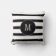 Houd je van strepen? Dan heb ik het perfecte kussen voor jou. Met een mooie witte en zwarte gestreepte achtergrond, is in het midden een cirkel met een plek om je initiaal in wit te monogrammeren. Versier je huis met dit prachtige kussen.