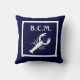 monogram & WITTE KREEFT & Anker WIT op BLAUW Kussen