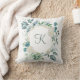 Mooie witte rozen met groene takken en eucalyptus op deze leuke sierkussen. Monogram met uw initiaal. Beschikbaar in twee maten.