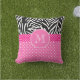 Monogram Zebra met het Hot Pink Polka Dot Pattern Buitenkussen