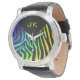 Monogram Zebra, zwart en regenboogdruk Horloge