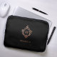 Monogram Zwart Roze Elegant Roos Gold Crest Naam Laptop Sleeve