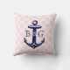 Monogramed Blauw Nautisch Anker & Roze Damasks Kussen