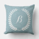 Monogramed lichtblauw linnen en witte krans kussen