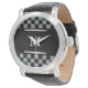 Mannelijke Black Checkered Gepersonaliseerde Monogrammed Roestvrij Staal Zwart Lederen Horloge. Mannelijk zwart en grijs gepersonaliseerd zwart lederen horloge voor u om te personaliseren - ontworpen in zwarte en grijze kleuren met een opvallend zilveren lijst, dit horloge is modern en stijlvol en is gemakkelijk aan te passen.! - Klassiek Monogrammed Checkerboard, of cadeau aan een vriend!