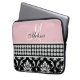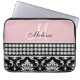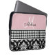 Monogrammed Black Damask Printed Diamonds Pink Laptop Sleeve