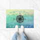 Monogrammed Blauwgroen Ombre Zee door Mat. Een kompas roos om je oceaanbearingen te houden. Geniet van het stijlvolle optische illusie-effect met de Blauwgroen tot blauwe tot turquoise-tonen van de ombre achtergrond. Houd het citaat "Onthaal aan het Huis van het Blok van de Stem"of voeg uw eigen naam, sentiment, groeten, of monogram toe om aan te passen. Nautisch, Tropisch, Beach, Kustal, Grootmoeder stijl!