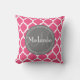 Monogrammed Bright Pink & Grey Quatrefoil Kussen