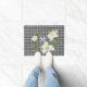 Monogrammed Floral Magnolia Black and White Check Deurmat
