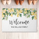 Introductie van onze Monogrammed Yellow Lemon Tree Doormat. Met waterverf illustratie van zomercitroenfruit. Geschikt voor natuur liefhebbers.