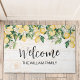 Introductie van onze Monogrammed Yellow Lemon Tree White Wood Deurmat. Met waterverf illustratie van zomercitroenfruit met witte houten plank achtergrond. Geschikt voor natuur liefhebbers.