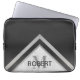 Monogrammed Geometric Chevron Black Silver Marble Laptop Sleeve