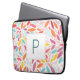 Monogrammed Modern Leaf Mosaic in Vibrant Pastels Laptop Sleeve