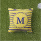 Monogrammed Navy Blue and Yellow Striped Pattern Buitenkussen