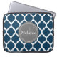 Monogrammed Navy Blue & Grey Quatrefoil Laptop Sleeve