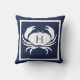 Monogrammed Navy Blue White Crab Nautical Outdoor Pillow Design by Sandy Closs