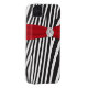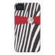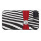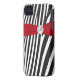 Monogrammed moderne rode, zwarte en witte zebrastrepen Hoesje-Mate Barely Er™ iPhone 4 Case met FAUX lint en juwelen broche.