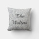 Deze silvery gooit kussens heeft een dun faux afwerking en uw monogram of familienaam die in een fancy manuscript wordt geschreven. Bij het maken van deze kussen wordt geen glitter of sequens gebruikt, dus je hebt alle glanzen en de kussen zijn nog steeds zacht van aanraking.