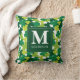 Monogrammed St. Patrick's Day Met Irish Blessing Pillow is je initiaal en naam te zien op een patroon van gelukkige shamrocks in groene tinten en de Irish Blessing: "Moge je zegeningen groter zijn dan de shamrocks die groeien, en je kunt er moeite mee hebben je overal te vermijden". De achtergrondkleur kan worden aangepast. Hand-getrokken van binnen Mijn Shell