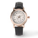 Een stijlvol rozen gouden horloge met uw script initiaal en naam in een klassiek type. De wijzerplaat heeft een decoratieve rand van bogen eromheen.