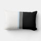 Deze gepersonaliseerde lumbale kussen zijn voorzien van vetgedrukte verticale strepen in witte, ijsblauwe, grijze en zwarte kleuren met een scriptmonogram aan de rechterkant in overeenkomende lichtblauwe schaduwen. Ideaal voor winterdecor of cadeau voor elke gelegenheid.