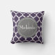 Monogrammen Paars en grijs Quatrefoil Kussen