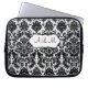 Monogrammen zwarte, grijze Damaslaptop Laptop Sleeve