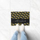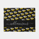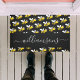 Gedemoreerd met vrolijke, glimlachende gele en zwarte hommels. Een zwarte achtergrond. Pas een naam aan en voeg deze toe. De naam wordt geschreven met een modern handgeschreven styliescript met swashes. Om de spoelbeurten te houden schrap slechts de steekproefnaam, verlaat de ruimten of emoji's voor en na de naam.