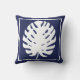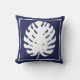 Monstera Leaf Navy Blue en White Coastal Modern Kussen