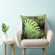 Decoratief kussen in donkere kleuren. Dit ontwerp is een prachtig regenwoudpatroon met schattige en moderne palmbladeren. Zomer stijl voor het strand en ontspannen in het tropisch oerwoud.