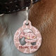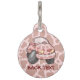 Cartoon auto met roze koe patroon. Aangepaste tekst.