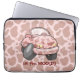 Cartoon auto met roze koe patroon. Aangepaste tekst.