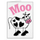 Schattige afbeelding van een zwarte en witte koe met het woord "Moo" in roze boven hem. Zijn vlekken zijn harten. Ideaal voor iedereen die koe verzamelt!