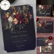 This stunning dark gothic wedding invitation features a luxurious moody and slightly withered floral arrangement in deep jewel tones over a black background. Perfect for a mysterious and romantic fall or winter ceremony. This dramatic design is ideal for couples seeking a non-traditional, opulent or vintage style. Created by Simply Farmhouse Press.