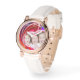 Een elegant rozen gouden horloge met een prachtig rood, blauw en roze vloeibaar abstract ontwerp. Dit horloge wordt geleverd met een stijlvolle witte leren polsband. De wijzerplaat heeft een tekstbericht en een foto. Tekst en foto's zijn aanpasbaar en kunnen gemakkelijk worden aangepast aan uw behoeften. Dit unieke en mooie horloge is het beste cadeau voor je vrouw, vriendin en moeder. Geweldig cadeau voor verjaardag, bruiloft, jubileum, vakantie, Valentijn's Day, Moederdag, en voor jezelf! Een echt uniek sieraad, dat elke vrouw zich geliefd en speciaal zal laten voelen!