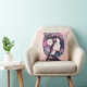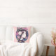 Gooi het kussen in een anime stijl portret van een mooi meisje, gekroond met zachte roze en witte bloemen