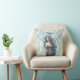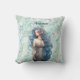 Een mooie zeemeermin met lang stromend blauw haar tegen een achtergrond van blauwgroen met een zeeschelp en schijfpatroon.