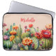 Deze prachtige cacti laptophoes is ideaal voor iedereen die van cactussen of planten in het algemeen houdt. Het ontwerp heeft een verscheidenheid aan bloeiende cactussen op een stoffige perzik achtergrond in een waterverf stijl. De naam op het sleeve is aanpasbaar en zou een geweldig gepersonaliseerd cadeau zijn.