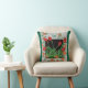 Mooie oranje bloemetjes en rode rozen op gepersonaliseerd kussen met een donkergroene achtergrond. Bloemen in de muur ontwerp met lieveheersbeestjes en wijnstokken op een grijze bakstenen muur.