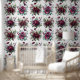Mooie Bourgondische bloemen met groene bladeren Behang