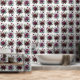 bordeauxrode bloemen met salie groene bladeren stok en schil behang.